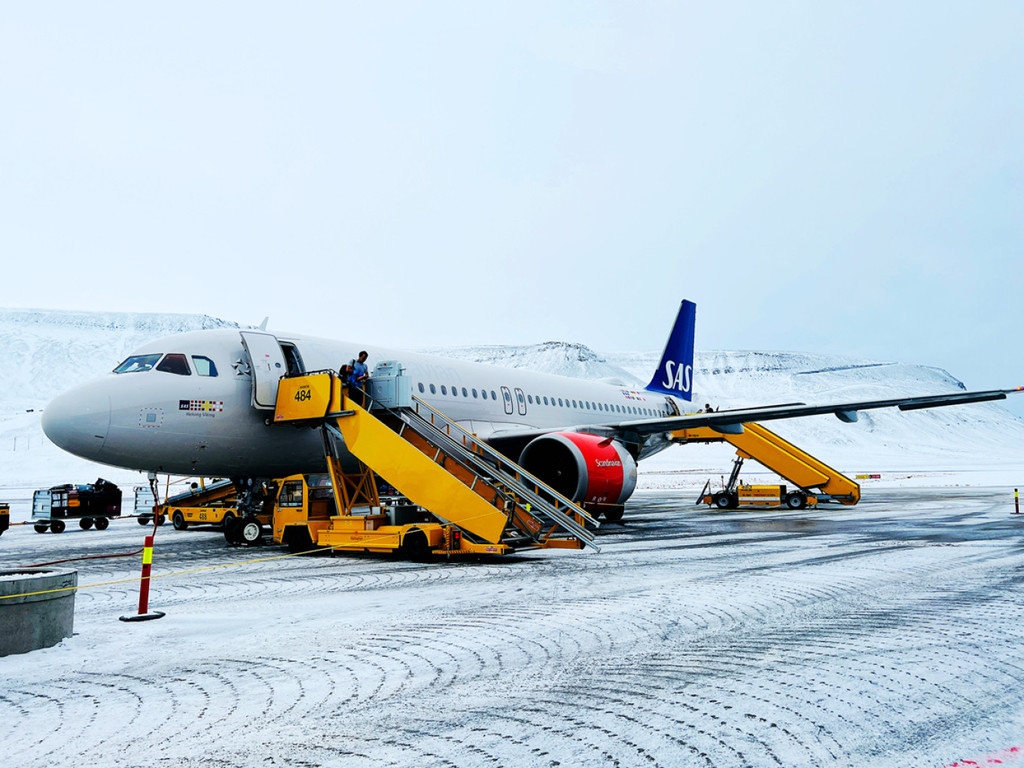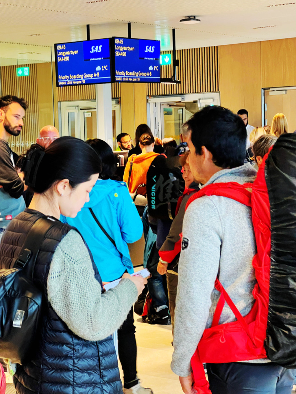 今天是两队人马汇合的日子,汇合后将搭乘 北欧 航空公司SK4490航班(9:45-12:40),飞往 斯瓦尔巴群岛 岛府所在地 朗伊尔城 。