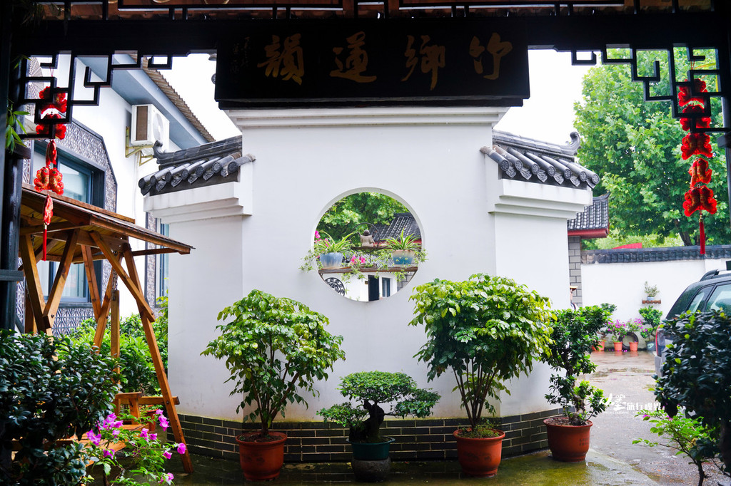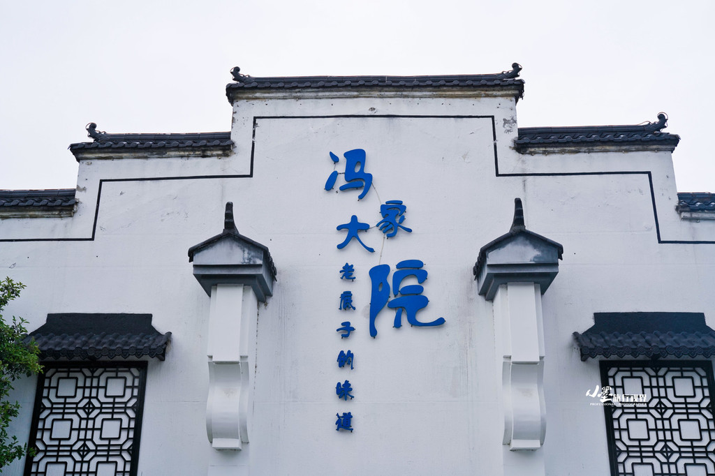 白墙黛瓦,马头翘角。冯家大院的外观为纯正的徽派建筑,门厅里摆放着老瓦缸、水车,书画添雅,文化韵味十足。