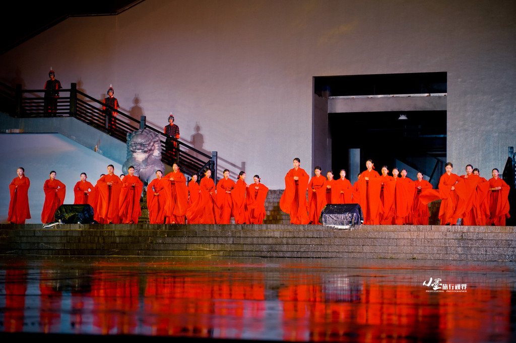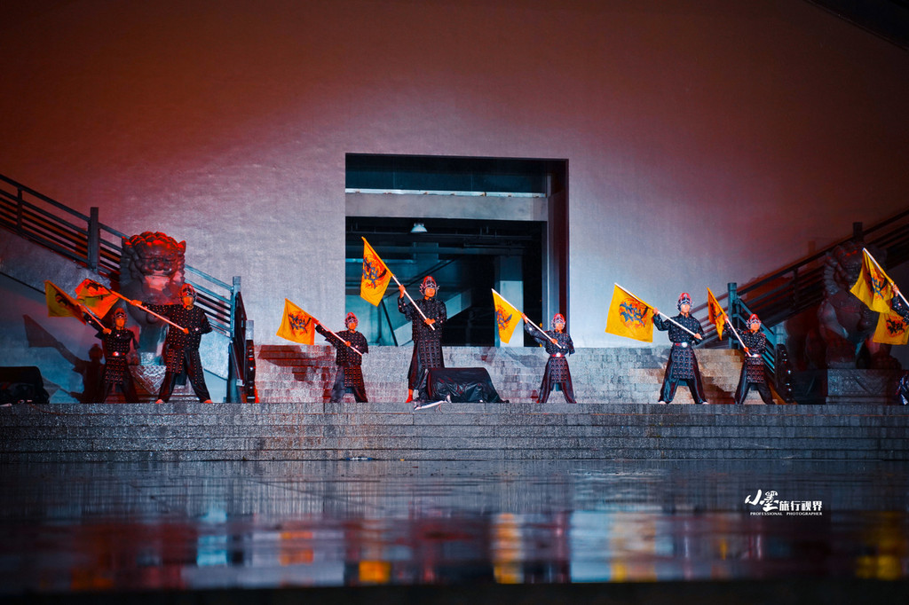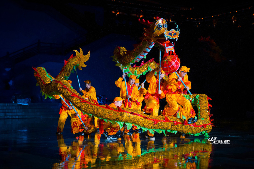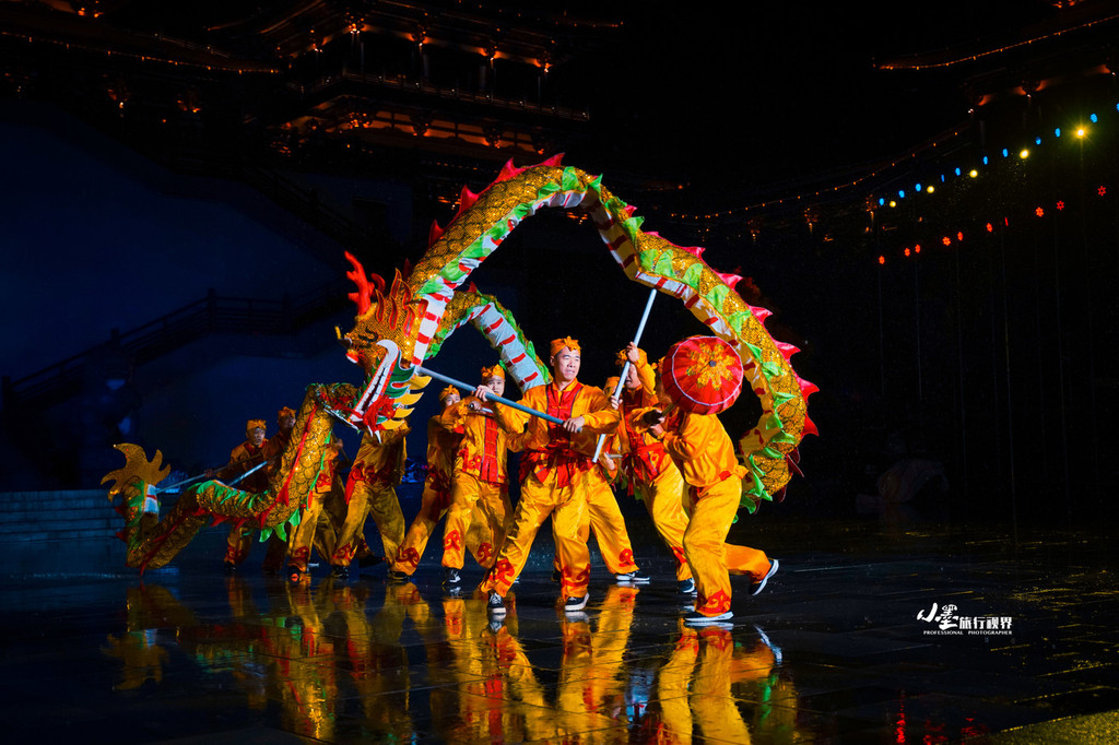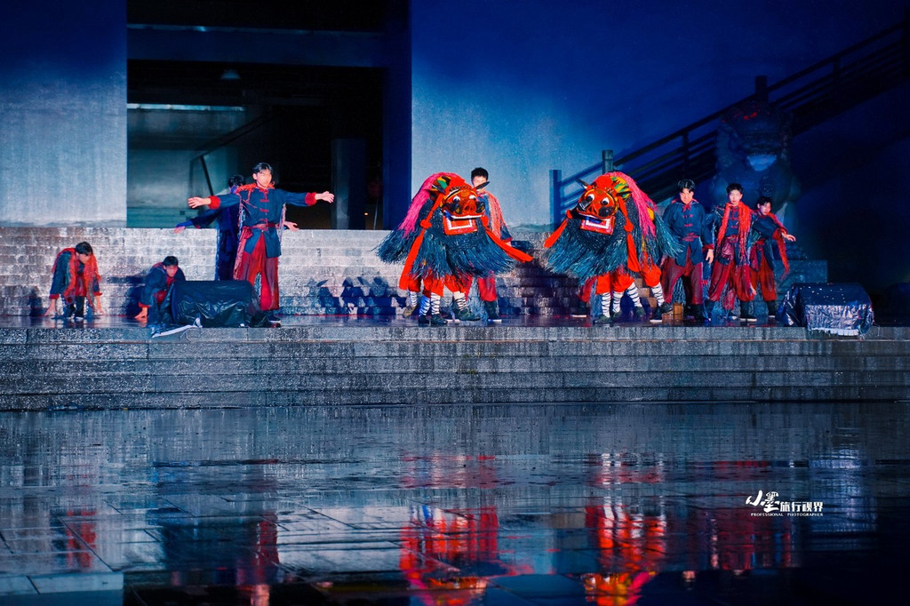 除此之外,演员们还冒雨表演了当地传统民俗文化中的龙舞和狮舞,精彩绝伦。