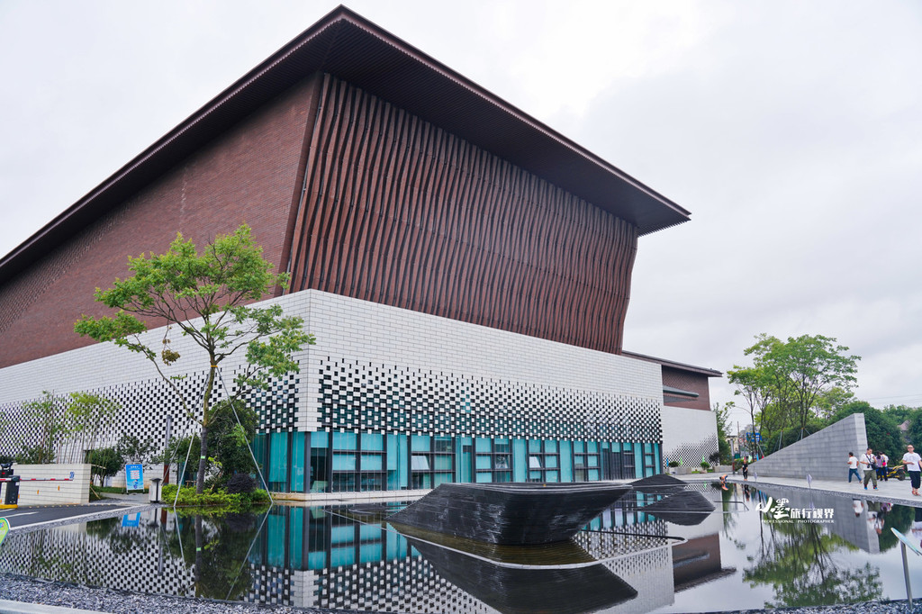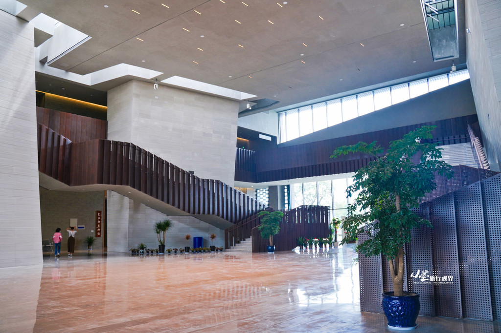 博物馆的外观设计元素满满,既有“四水归堂”的合院理念,“墨顶浅墙”的徽派风格,“双龙戏珠”、“石窟中庭”、“斗拱鳞墙”等传统元素,也有现代风格元素融入其中。