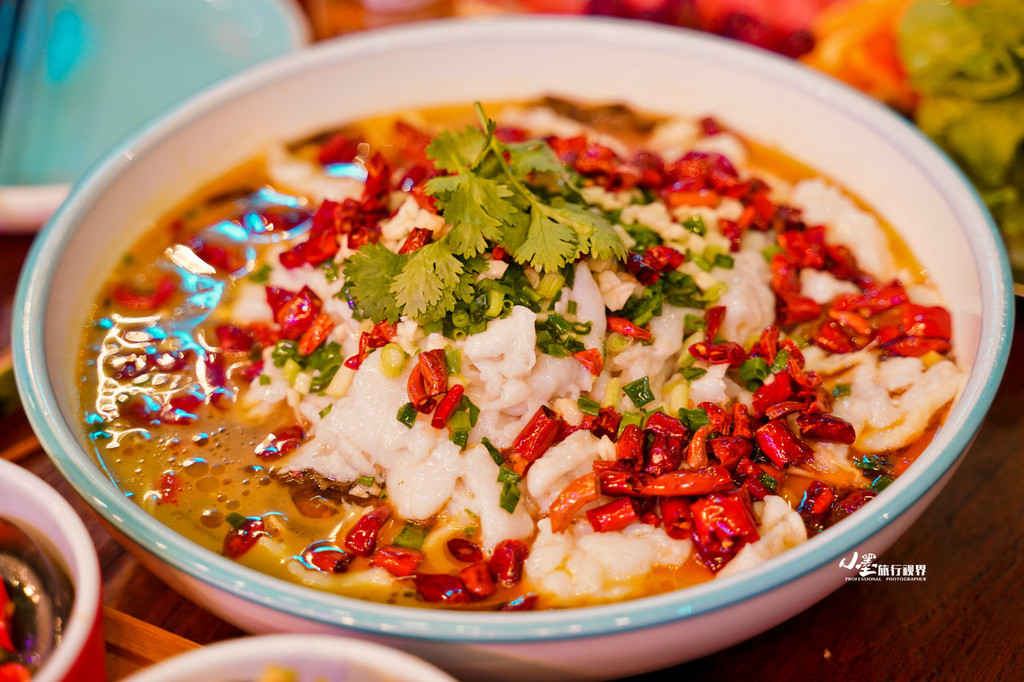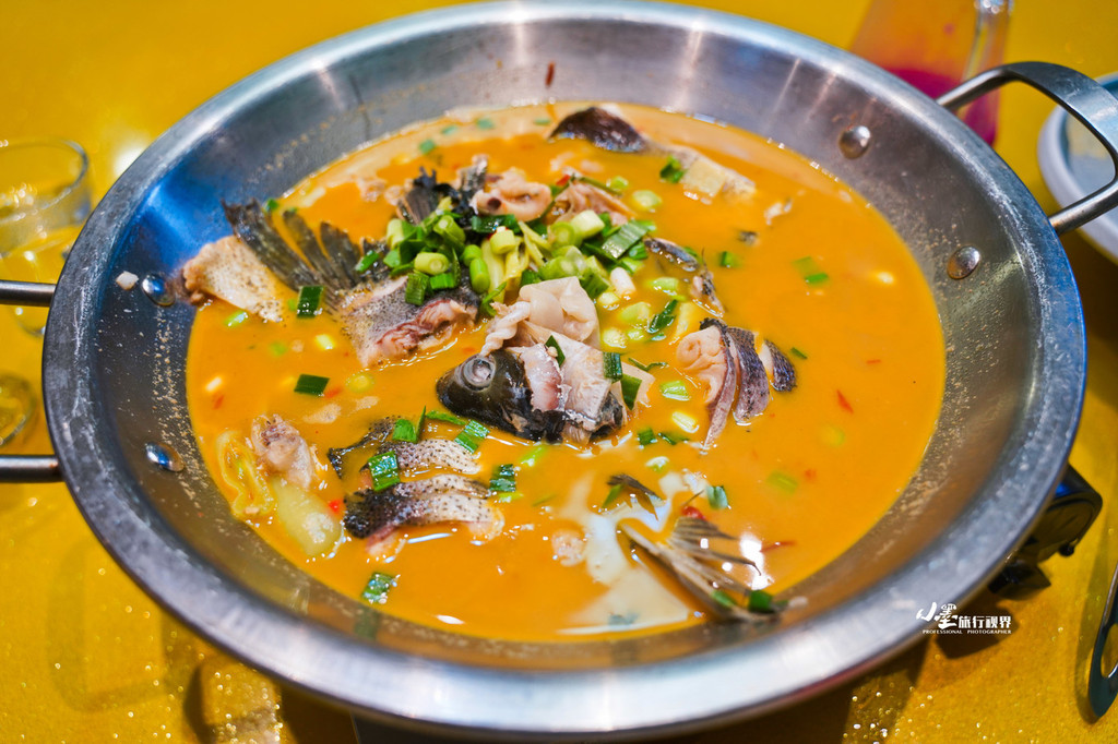 烧水库鱼用的是螺狮青,红曲酒糟炖煮,酒香遇见细嫩的鱼肉,怎一个香字了得。除此之外还有着小诀窍:螺狮青在流水下活鱼现杀,腌制时间不能过长,白辣椒的辣味和香气比青辣椒更适合烹煮鲜鱼…………