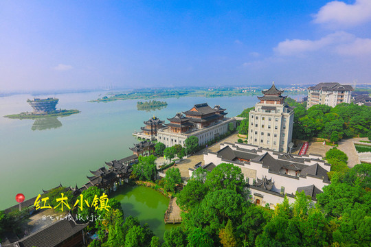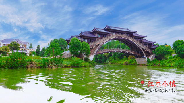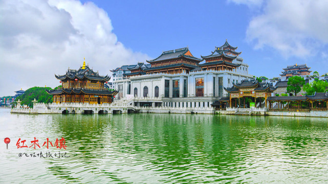 从船上看红木小镇,古风的建筑点缀在碧绿的山水之间,真多有点仙境一般