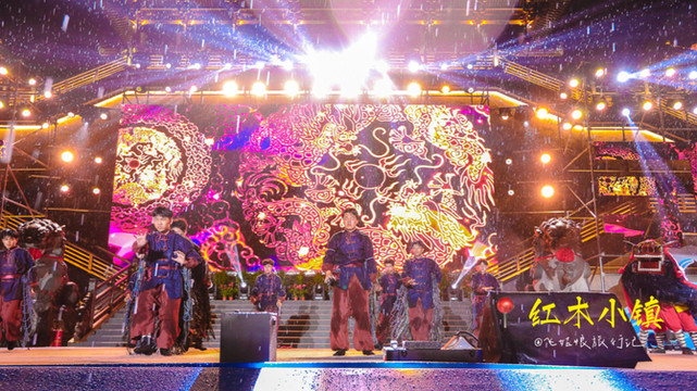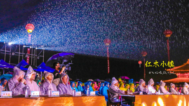 恰逢红木小镇开园,雨中的开园演出极为震撼。