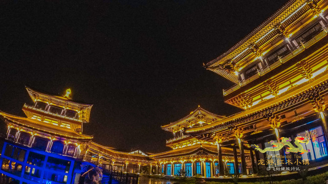 整片古风建筑群灯火璀璨,像是梦回大唐不夜城。