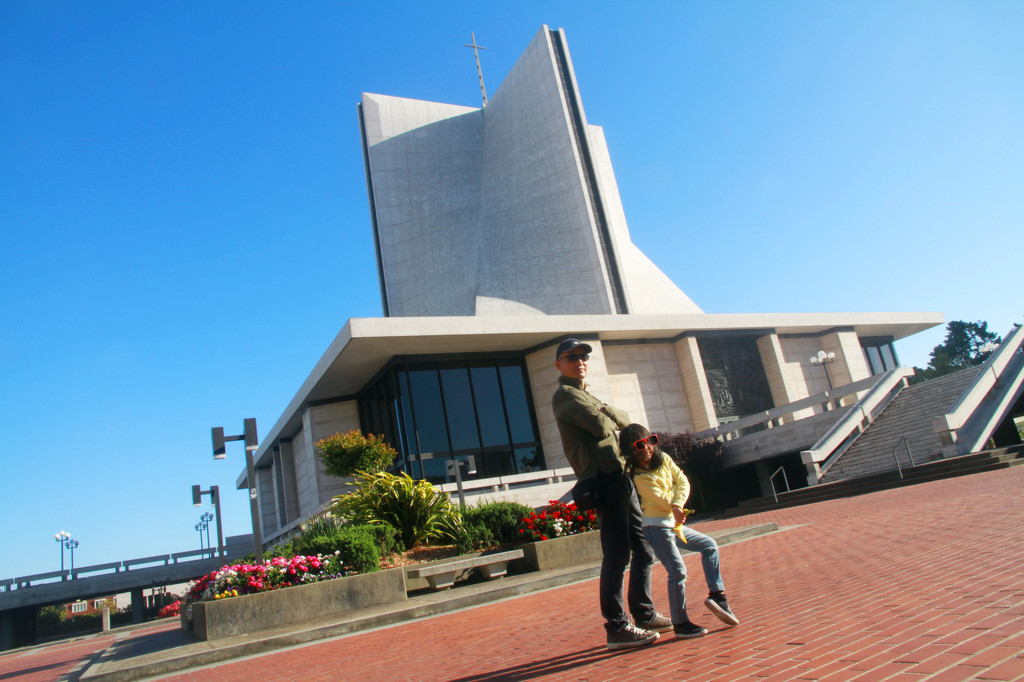行走了十分钟左右,我们来到了圣玛利亚大教堂。之所以参观参观这个教堂,是源于对华裔设计大师贝聿铭的膜拜。走近圣玛利亚大教堂,确实给人一种非传统教堂的赶脚,既不是哥特式的建筑,也没有厚重的历史感,教堂现代设计感十足,建筑物顶部是一个巨大的十字架。我们不是信徒,只能走马观花领会一下大师的佳作。
