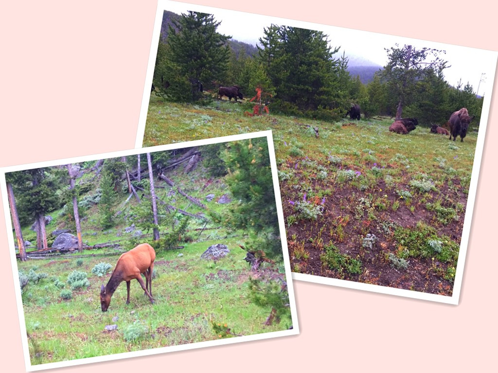 黄石公园景点以“8”字分布,需要完整的两天时间才能游览完。考虑黄石公园天气多变,当天下午到达西黄石后,趁着天气晴好,我们抓紧时间游览8字下半部部分景点。进入公园不久,展现在眼前的是绿草青青、溪流涓涓的田园牧歌景象;再走一会又是一幅树木葱葱、繁花似锦的油彩画。一路游览,窗外风景可以说是一步一景,引人入胜。