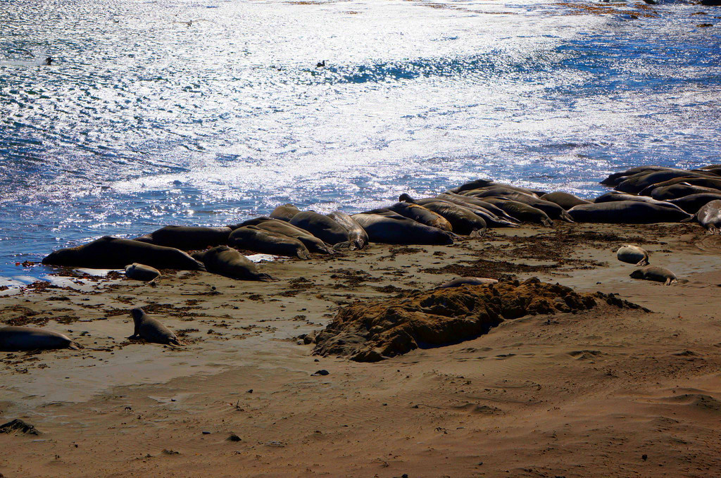 6月7日早上,从酒店开车15分钟就到了象海豹海滩,这里聚集数千头象海豹,有睡觉的,有打闹的,有狂叫的.....虽然象海豹王国散发出浓浓的腥臭味,但还是吸引了不少游客。