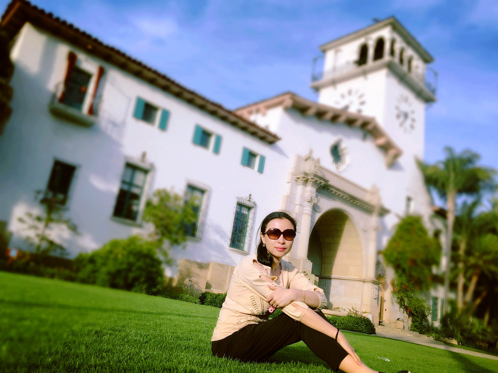 离开圣芭芭拉大学,驱车一会儿来到了圣芭芭拉小镇,这是一座处处充满地中海元素的滨海小城,白墙红瓦、蓝天白云,下午的阳光斜照在小城上,小城仿佛变成一座金色城堡。