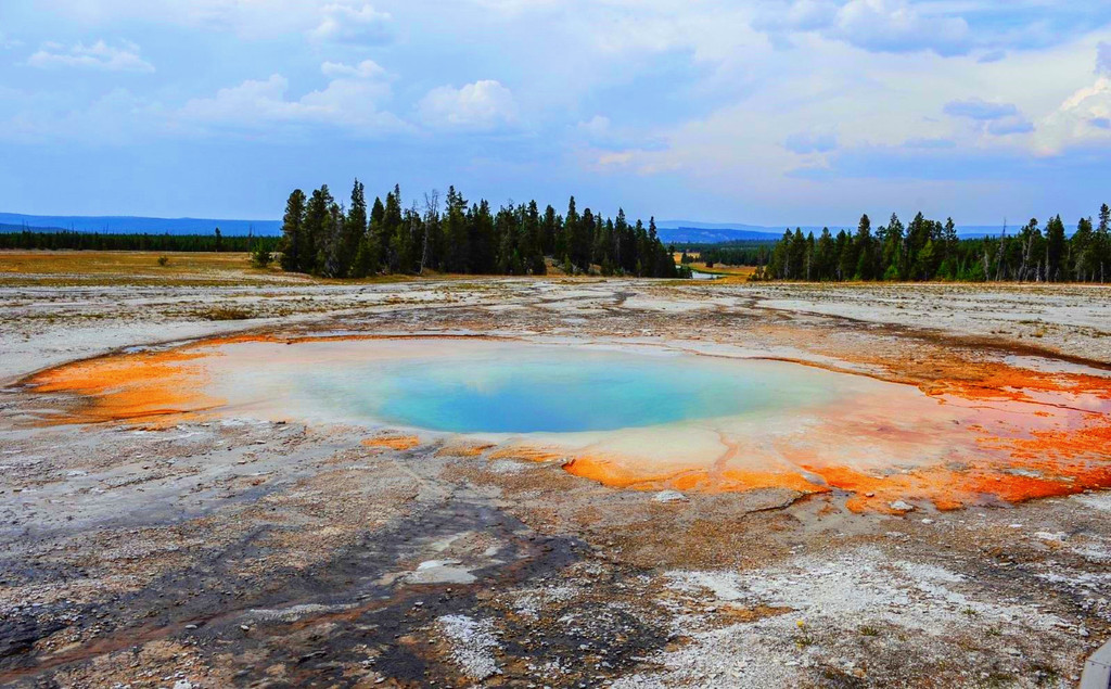 大棱镜,黄石公园里最有名的间歇泉之一,是美国最大的温泉,世界第三大温泉。因其多彩的颜色,而被命名为“大棱镜”,从里向外,分别呈现出蓝、绿、黄、橙、橘、红等不同颜色,被誉为“最美的地球表面”。大棱镜周围建有行人木栈道,一圈走下来,大概需要40分钟。我们第三天趁天气好,又重走了一次大棱镜。