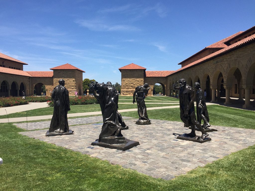 选择去斯坦福大学游览,除了它如雷贯耳的名声,更重要的是荳妞舅舅毕业于这所名校。漫步斯坦福校园,绿油油的草坪宁静而美丽,一座座古朴的地中海式建筑厚重而庄严,一尊尊罗丹大师的雕塑质朴而艺术。校园里不仅书墨飘香,而且弥漫着浓浓的艺术气息。在斯坦福校园,不少黄皮肤黑头发的华夏子女,正在为自己为国家而努力,但愿他们学有所成报效祖国。
