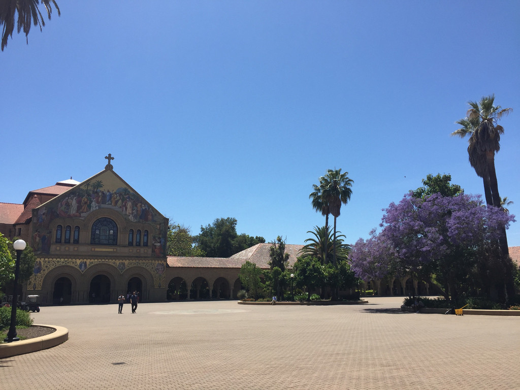 6月5号,天气晴朗,天空被白云霸占了一半。早上9点,我们来到酒店对面的租车行取车(当时预订希尔顿酒店就是考虑了取车方便),经过了半个小时排队等候,终于坐上了霸气的“大白”,向着今天第一个目的地——斯坦福大学出发。