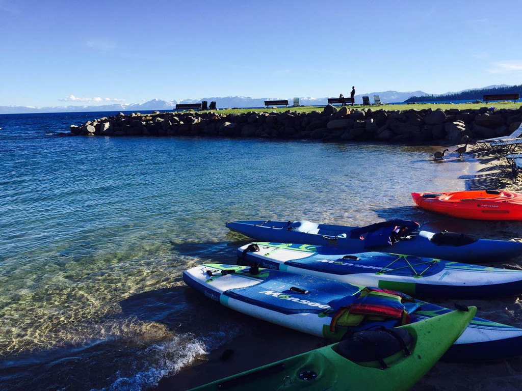 我们第一站来到太浩湖的水晶湾,此时天色正值下午,阳光温暖,湖风习习,湖边非常舒服安逸。这里是当地居民的休闲场地,有大型停车场,还有小朋友玩的沙池。岸边有很多居民或在晒太阳,或在进行各类水上运动。