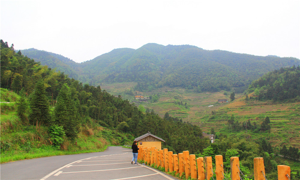 沿途一路的山山水水,山水相连,连绵起伏。山腰盘旋的那曲折蜿蜒的公路如缕缕飘带缠绕在那青山之中,成为一道独特亮丽的风景。朦胧的远山,笼罩着一层轻纱,影影绰绰,在飘渺的云烟中忽远忽近,若即若离,看到此场景,只想感慨一句:“此景只应天上有,人间能得几回闻