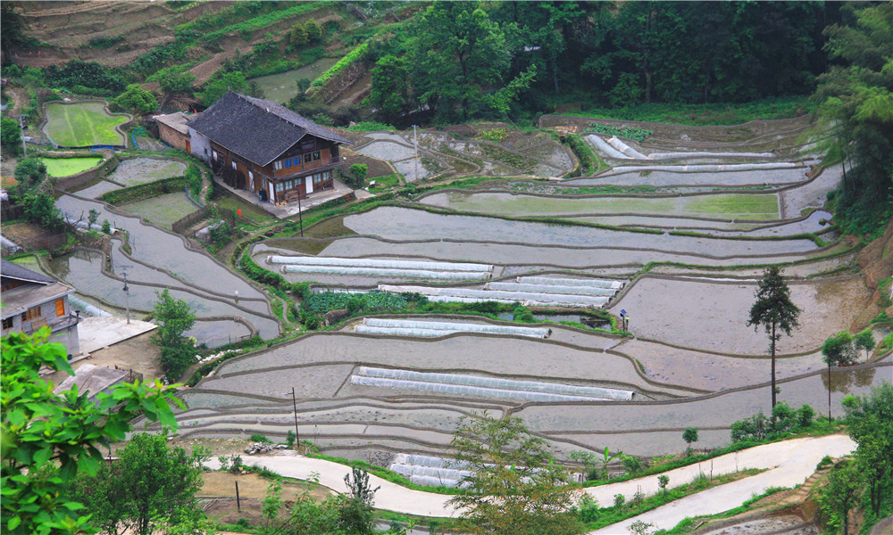 月牙山的梯田排列有序、线条流畅、层次分明,极具形态美。