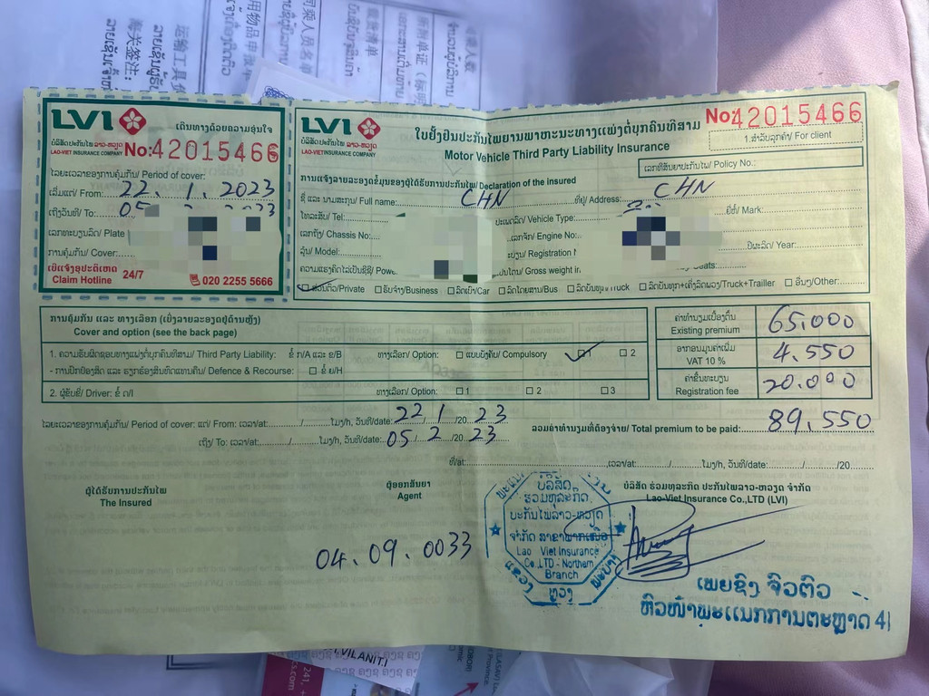 ⭐️⭐️⭐️以上5份资料是每次警察拦车必查的。只要这5份资料齐全并且都在有效期内,你就可以在老挝境内放心大胆的开!记住每次被警察检查完后一定要看一下是不是5份资料都还在!!!