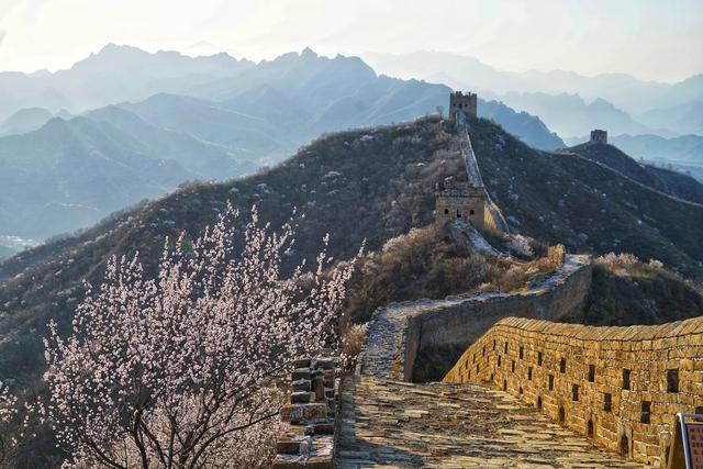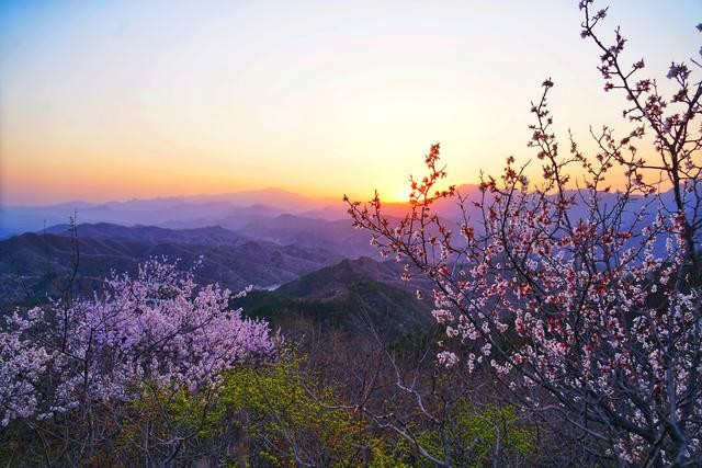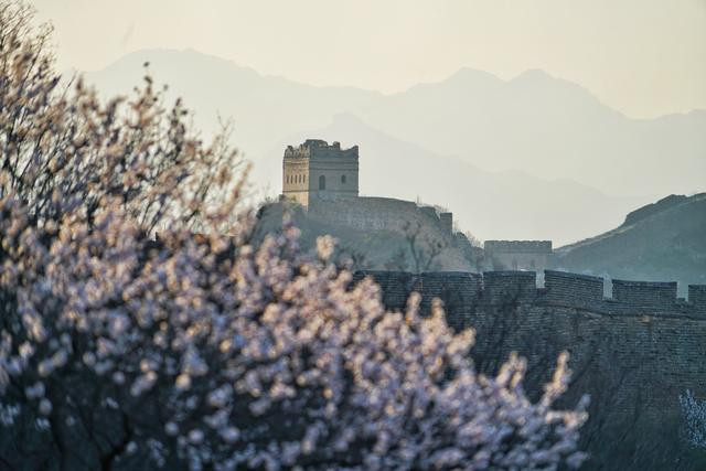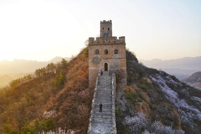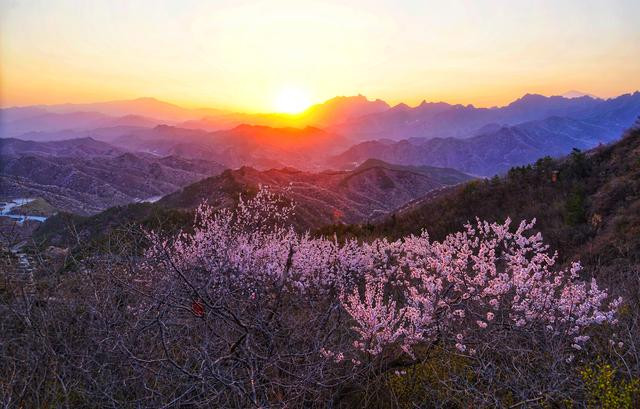 清明过后,金山岭长城已是草木曼发、春山可望。山谷里千树万树的杏花,顺着蜿蜒的长城向前铺展开去,在每一个峰回路转处吐蕊迎春,蔓延成了一幅绝美画卷,如烟,似霞,轻盈,柔美.