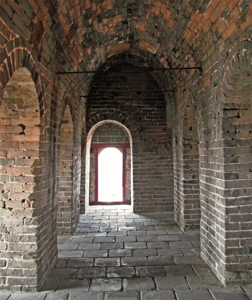 库房楼,位于金山岭长城的砖垛口与沙岭口之间,据说是戚继光和他的弟弟戚继美修建的。平面长方形,一门二窗。敌台外围设置三道防线。敌台外侧紧靠楼脚下,有一个长15米,高2米的半圆形战台,战台上设有密集的射孔。这是库房楼的第三道防线。在敌台外侧大约50米远的半山腰上,用石块垒砌成一道长200多米、高2米的挡马墙,阻挡敌骑兵接近敌台,这是第二道防线。在敌台外侧靠西面的一座山梁上,用砖石砌成一道南北走向的高大城墙,形成长城的支墙。支墙左右两侧200多米的两个山头上,各筑一个圆形瞭望墩台,可以及时观察到远方的情况。支墙与库房楼相通,如果有敌兵来袭,守卫在支墙上的士兵可以最先与敌人交火,万一抵挡不住,可以凭借支墙,边打边往后撤退,最后撤到库房楼里,继续与敌兵周旋。这是库房楼的第一道防线。这种步步为营的设计,令人为古代缜密的军事思想而叹服。