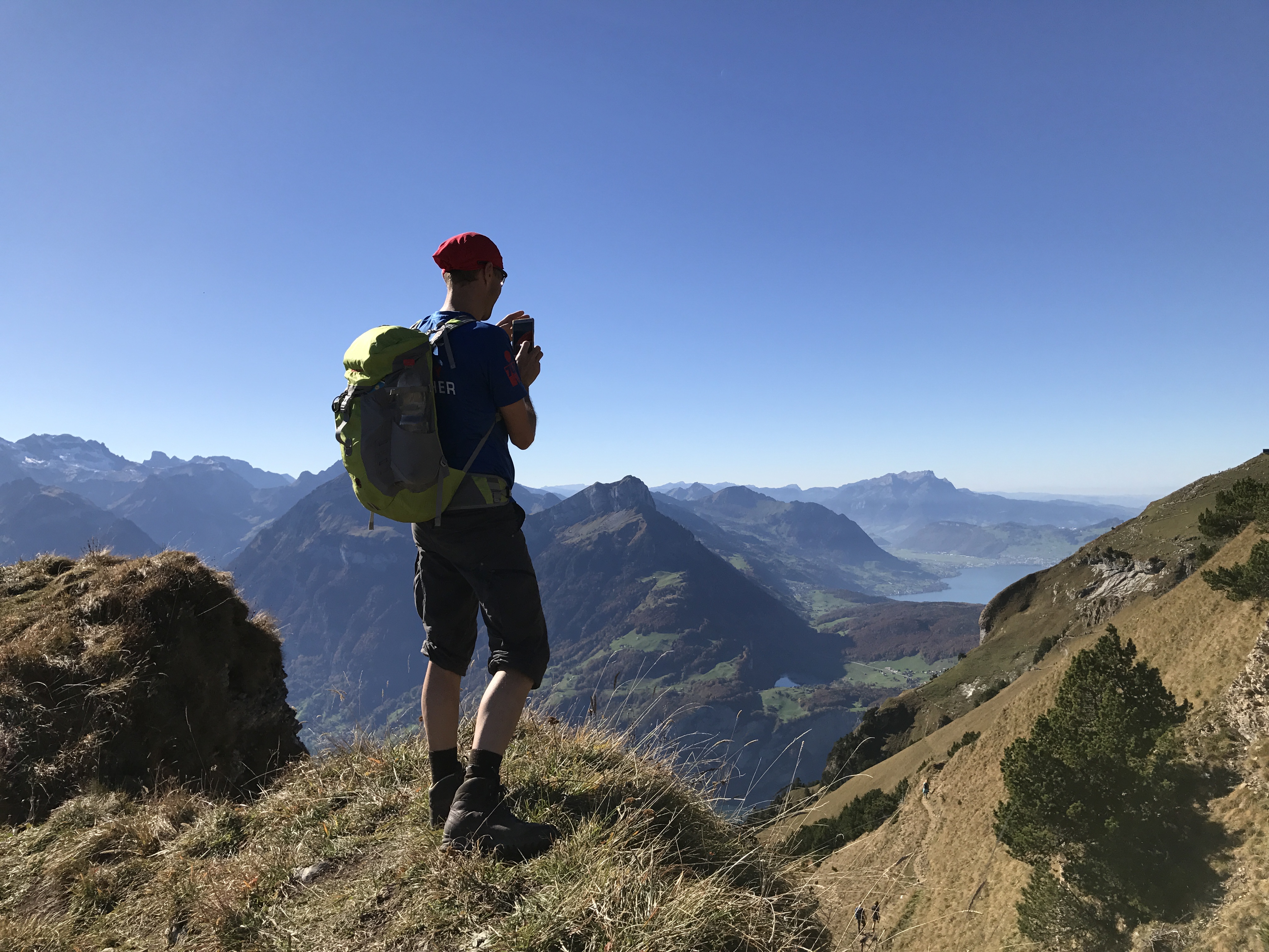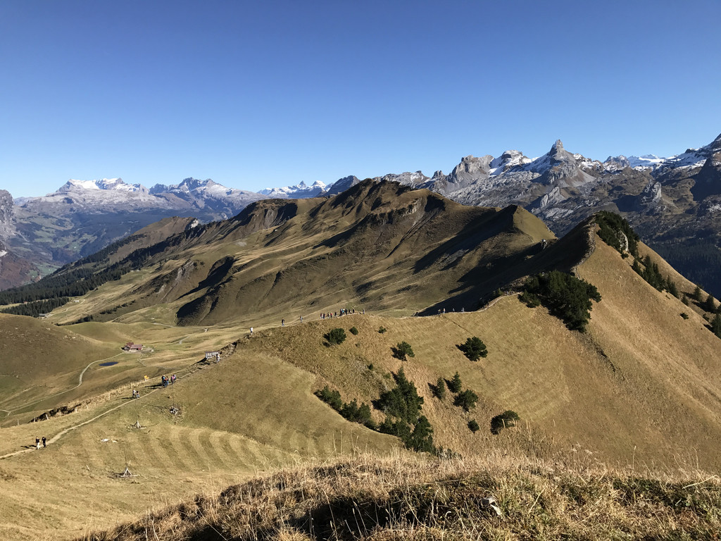 这条路线叫做Stoos山脊徒步路线(Gratweg Stoos),一路能看到至少10个瑞士中部的湖泊和数不尽的阿尔卑斯山顶峰,那是让人震撼的360度无敌全景。我也自认是见过些“世面”的人,但在此美景面前我心都醉啦。