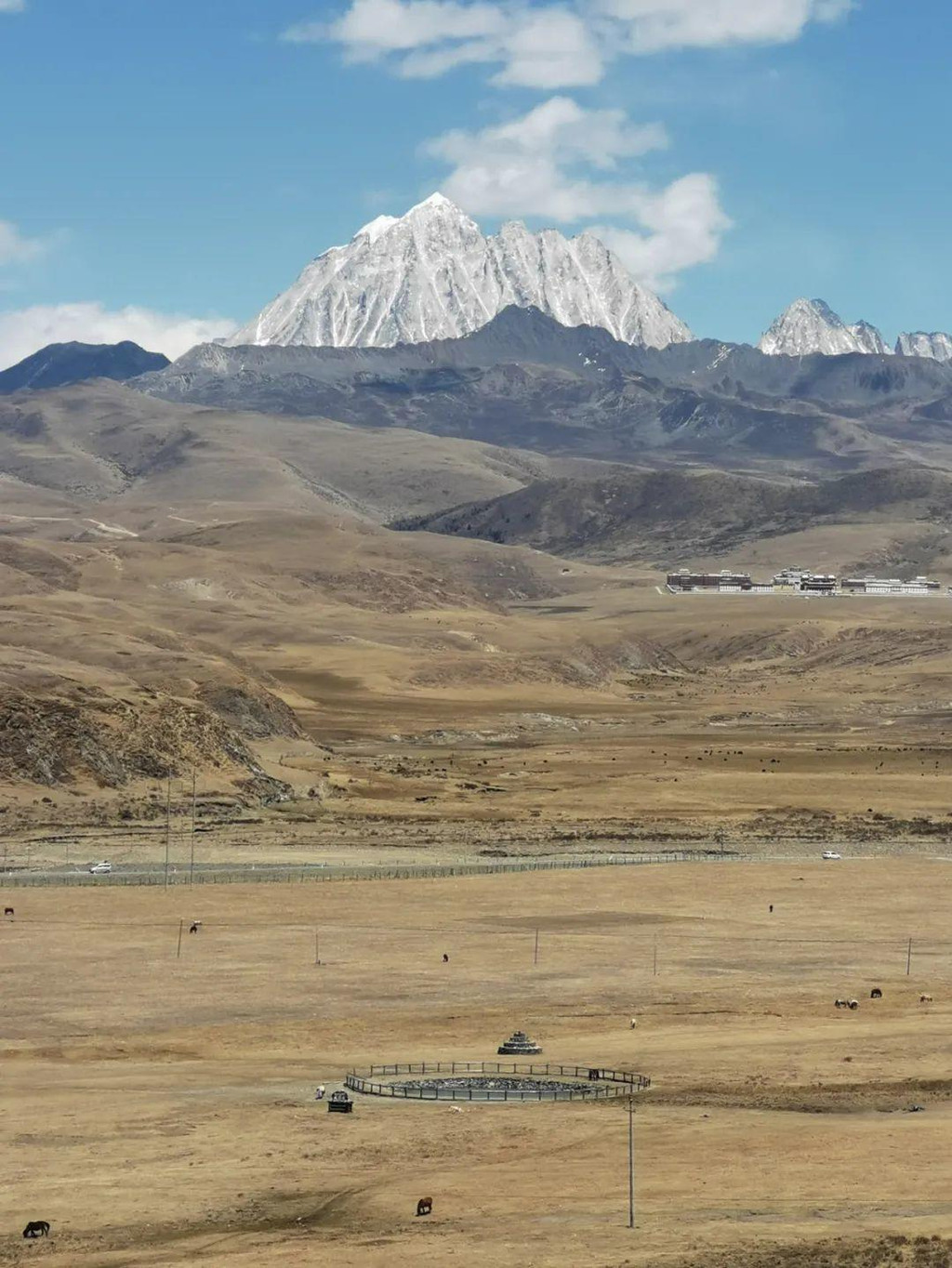 下图为雅拉神山,藏族古籍称其为“第二香巴拉”,主峰海拔5820米,为《格萨尔王传》记载的四座神山之一,有“东方白牦牛”之称。神山西北面与塔公草原相连,形成雪山与草原交相辉映的壮美景观。