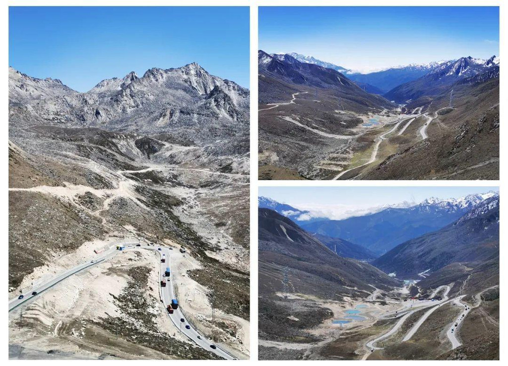 站在垭口四顾瞭望,崇山峻岭连绵不绝,雪峰峡谷巍峨壮阔,盘曲公路如山舞银蛇,串联碧湖似翡翠璎珞。