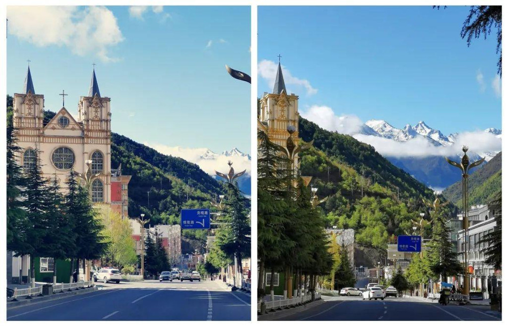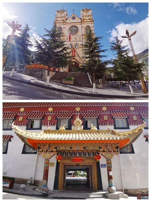 磨西镇是一座很有特色的小镇,这里有藏式颜色鲜艳的建筑,也有欧洲风格的教堂,这里是汉、彝、藏等民族聚居地,不同的文化在此交融共生。