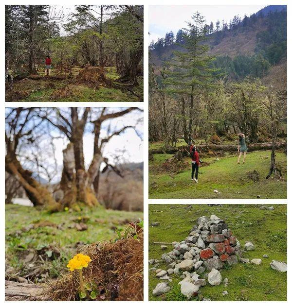 这里的森林下、草甸上可以看到大片红色的石头,是一种高山特有的微生物附着在石头上形成的奇观。有人曾将石头带出去研究,但一离开这里,石头上的红色就消失了。藏传佛教认为贡嘎山是胜乐金刚的道场,信徒们用红色圣物“圣德拉”供奉胜乐金刚佛母,所以贡嘎山周围散落了很多“圣德拉”,由此形成了神秘的红石。