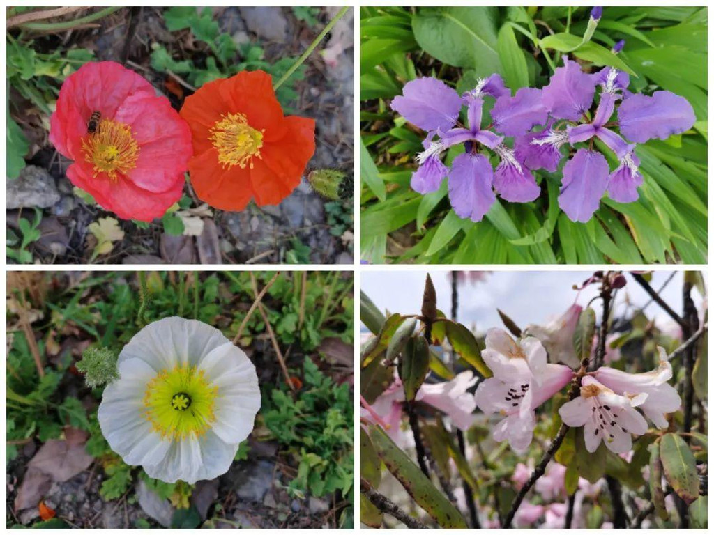 磨西镇位于号称“蜀山之王”的贡嘎山区,镇上还可看到贡嘎山地区特有的康定木兰,它也是一种原始古老的孑遗物种和国家重点保护珍稀树种,因发现于北面不远处的康定而命名,下图右上即为康定木兰。在这天后来的路上——红石公园、海螺沟等地,还遇上不少漂亮的鲜花。