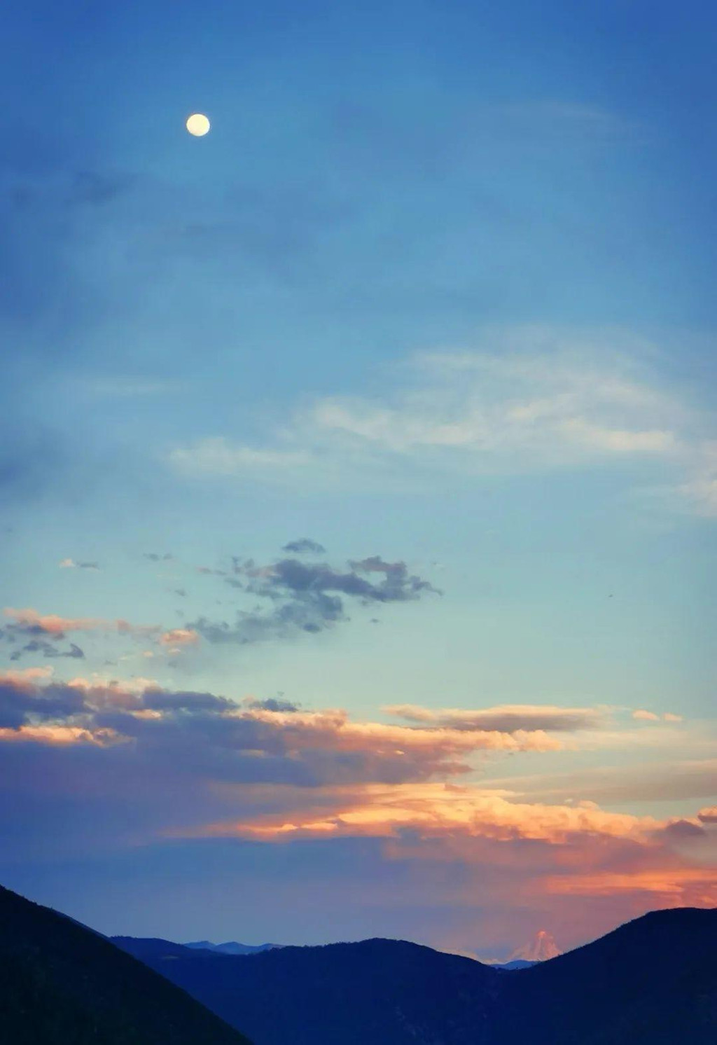 尽管错过了神山,尽管夜间山路危险又无聊,剪子弯夕阳下山时,染血红云、披金雪峰和像太阳一样明亮圆满的月亮,也慰藉了长途跋涉的疲劳灵魂。