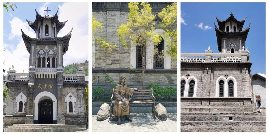 摩西天主堂始建于1918年,1926年建成,由钟楼、经堂和附属房组成,为中西合璧的四合院建筑。
