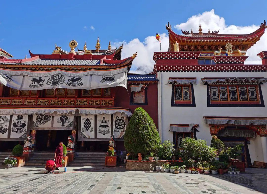 寺院由大雄宝殿、释迦摩尼佛殿、护法殿、千手千眼观音圣殿、莲师殿、成就塔殿、塔林等组成,其中保存有释迦牟尼等身像、八思巴法王留下的足印、印度大成就者建造的成就佛塔等,是极为珍贵的文物。