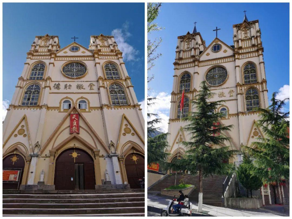这座天主堂是红军长征时期毛泽东的临时住地,磨西会议就是在天主堂的神甫楼召开。如今这里是一处爱国主义教育基地,也是全国为数不多的中西合璧式天主教堂。