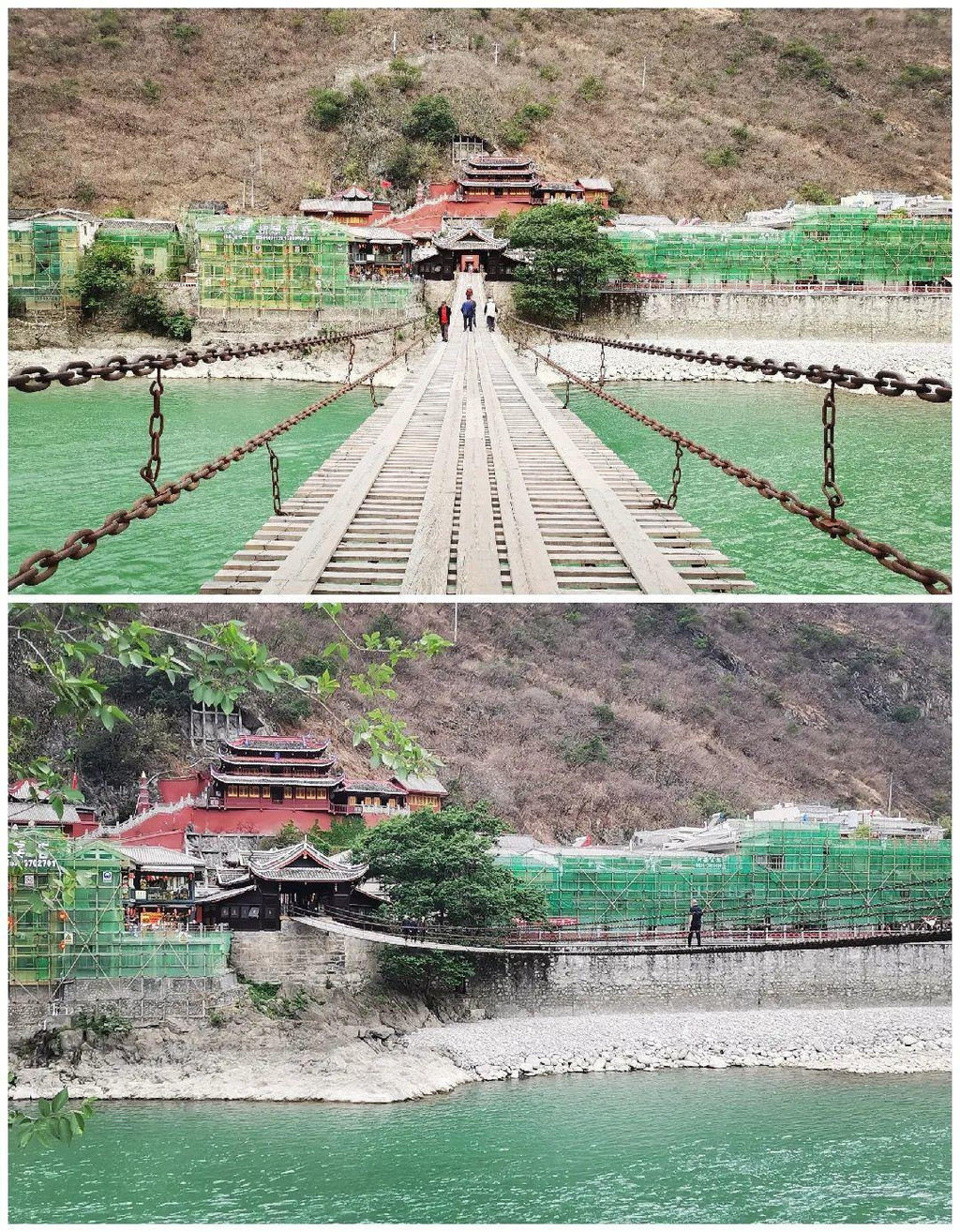 泸定桥又名大渡桥,始建于清康熙四十四年(1705年)九月,翌年四月合拢告竣。桥身由13根铁链锚固于大渡河两岸,长103.67米,宽3米,造型古朴,结构独特,曾以川藏交通要道和军事要津著称于世,为西南边疆民族文化交流发挥过重要作用。