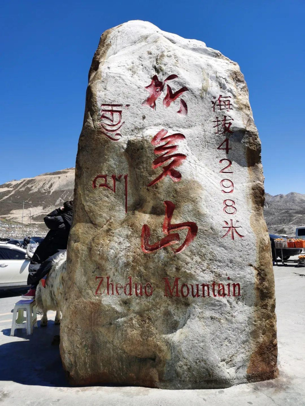 沪聂线继续向西北行进20公里,抵达折多山垭口,这里海拔4298米。观景台一块石头上刻着“西出折多”,表示折多山是一座重要的地理和文化分界线:它是大渡河和雅砻江的分水岭,也是汉藏文化的分野,穿越折多山后,就正式进入了康巴藏区。折多山也是继二郎山后沿318国道入藏翻越的第二座大山。