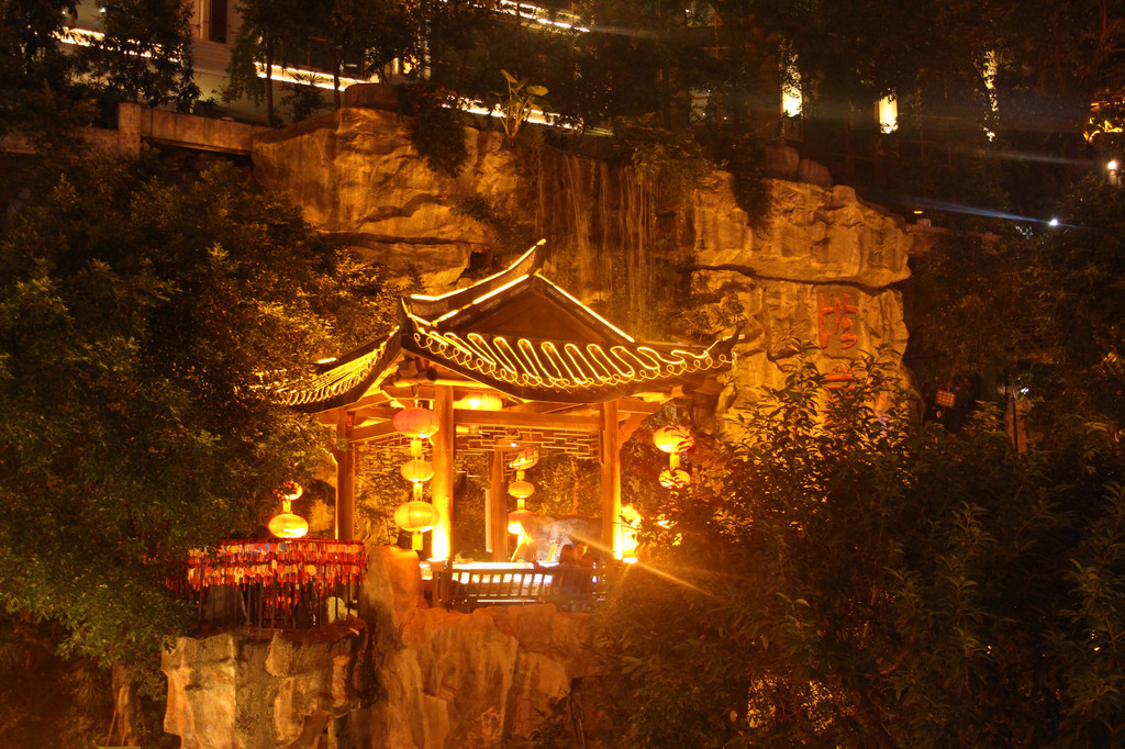 洪崖洞一共是11层,这里就是传说中的从一楼坐电梯上到11楼,结果又到了1楼。