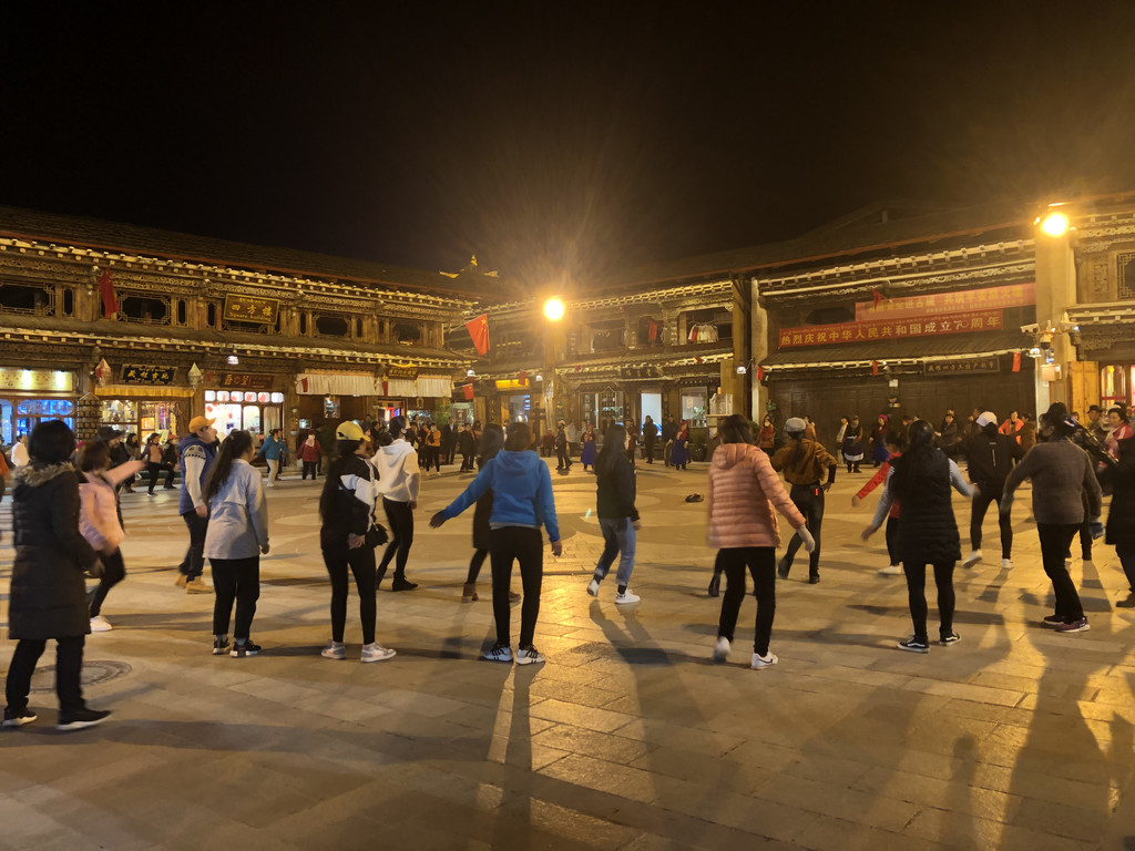 每一个地方都挡不住广场大妈们的热情,位于独克宗古城广场的集体广场舞。很热情很豪放也很有藏民的特色。