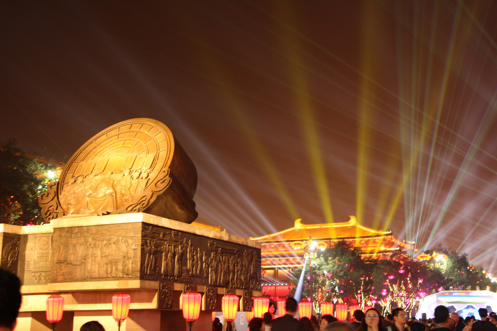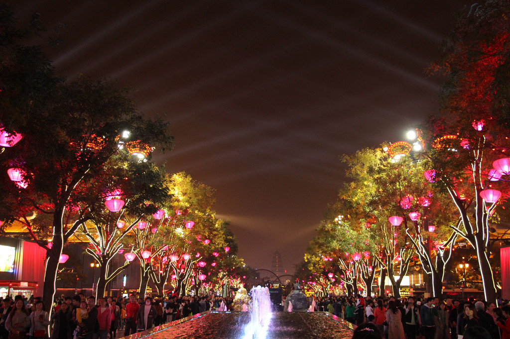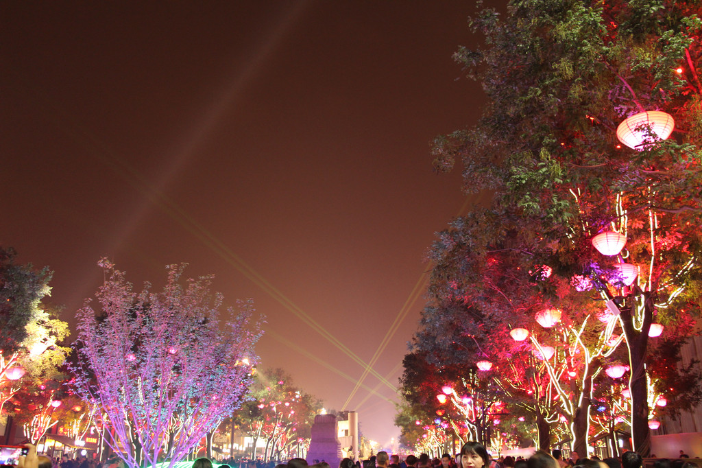从大唐不夜城回头看就是大雁塔,周围的灯光琉璃衬托着大雁塔很是美。