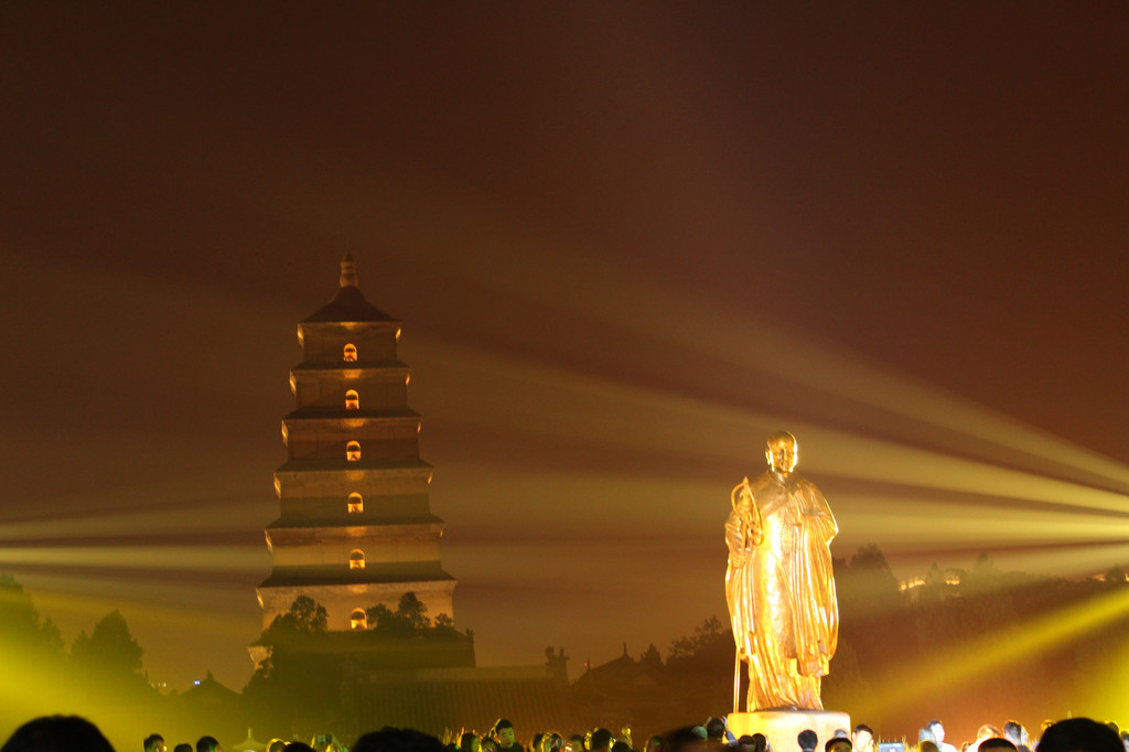 大雁塔北广场上的玄奘雕塑,玄奘又被称呼三藏法师,也就是我们俗称的唐僧。玄奘为探究佛教各派学说分歧,于贞观元年一人西行五万里,历经艰辛到达印度佛教中心那烂陀寺取真经。也就是小说西游记里面的原型人物。