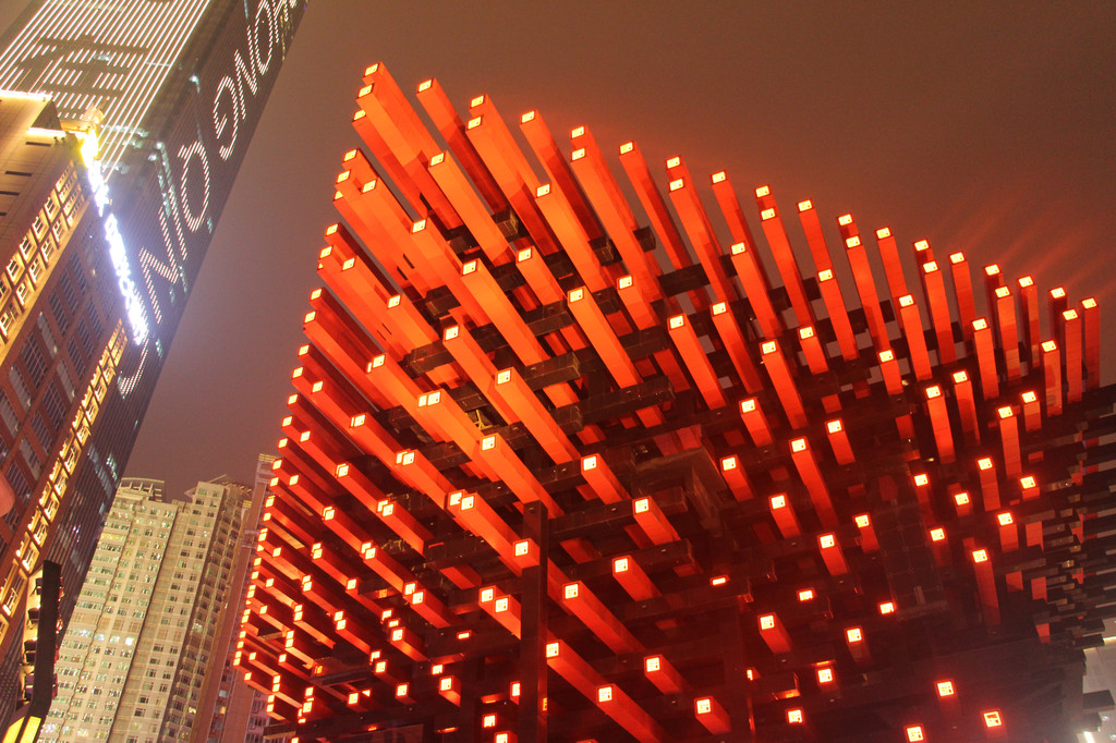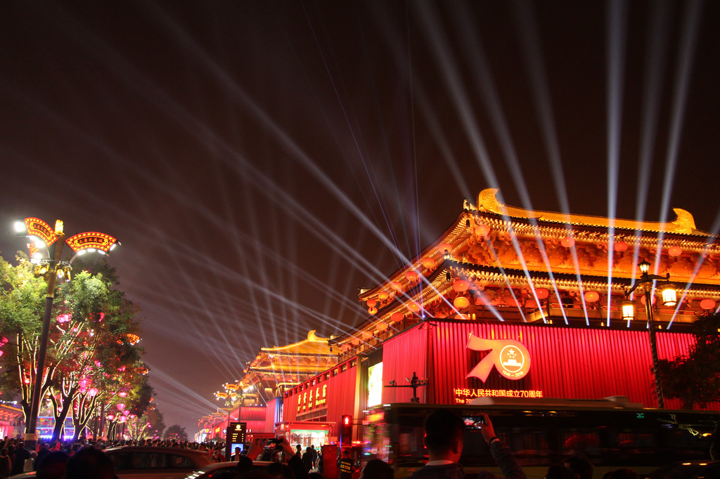 永兴坊在西安城墙的东门附近,晚上在城墙上可以看到这一片的灯红酒绿。