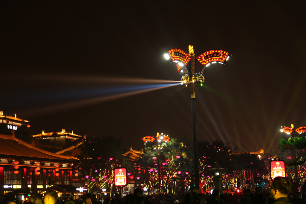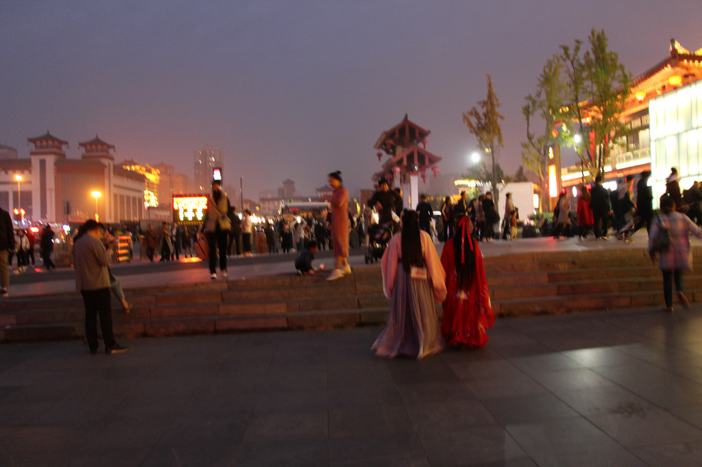 我们是准备在西安玩两天整,第一天晚上到,第四天早上从西安直接飞丽江。两天的时间安排的比较宽松,只是想在古城里面随便溜达溜达,既没有去华山也没有去兵马俑。西安的白天古色古香,那夜晚灯光一亮就更突显了西安的中国味道,两天晚上一天安排在的西安城墙,一天晚上安排在了大唐不夜城。