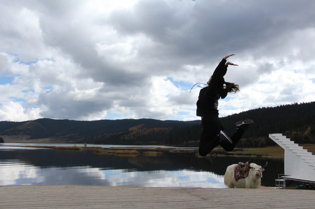 牦牛在看着她飞起,每到一个地方都要飞起打卡。其实没有看起来跳的那么高,主要是小腿向后抬起来的高而已,也是我抓怕的还不错。。