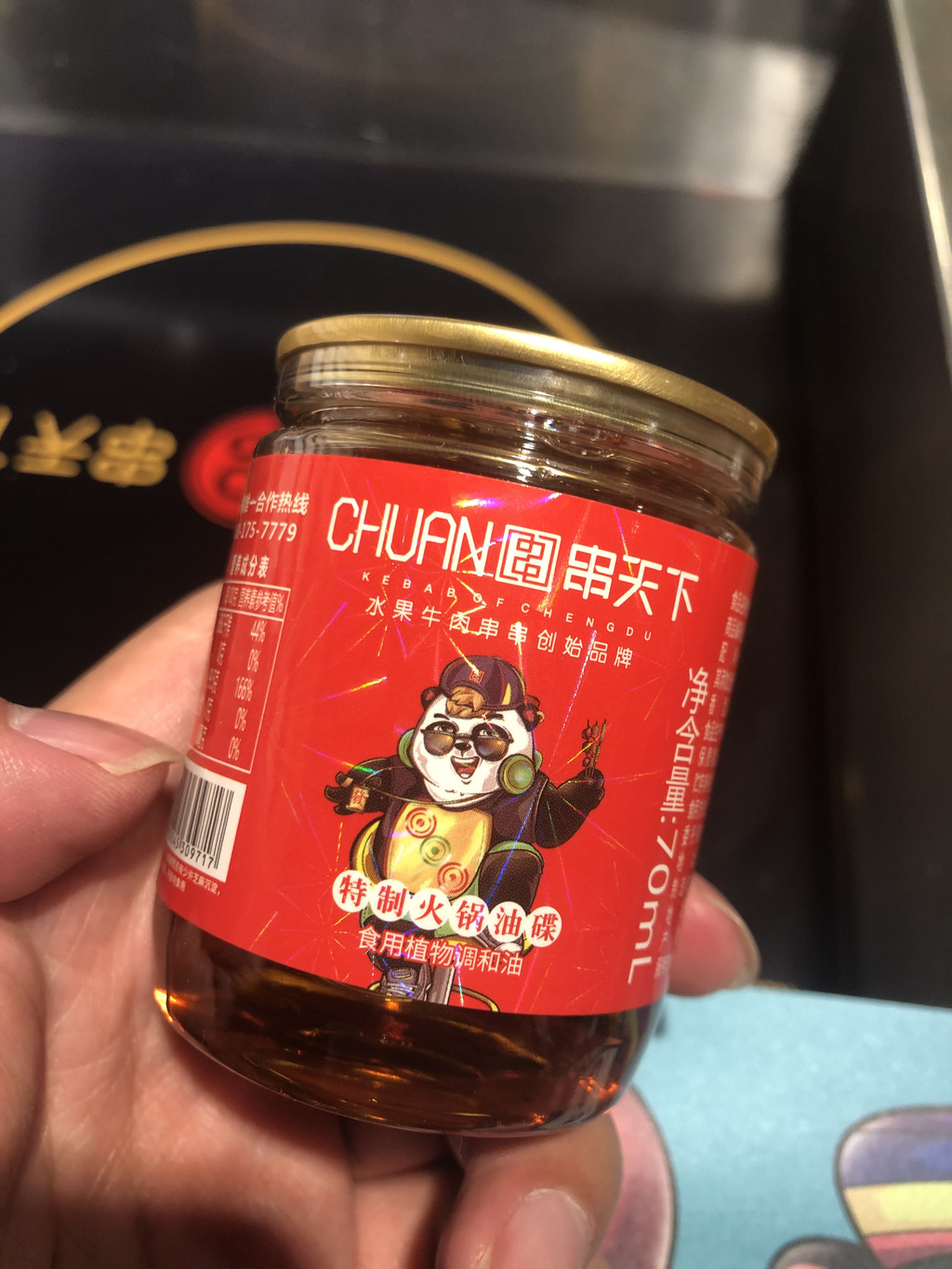 在四川这吃火锅或者串串香这个油碟应该是必配的吧,不过可能就外地人会用吧,用了油碟之后就不会特别的辣了。这油碟是直接就放在桌子上的,直接算进菜单里面,五块钱一瓶。