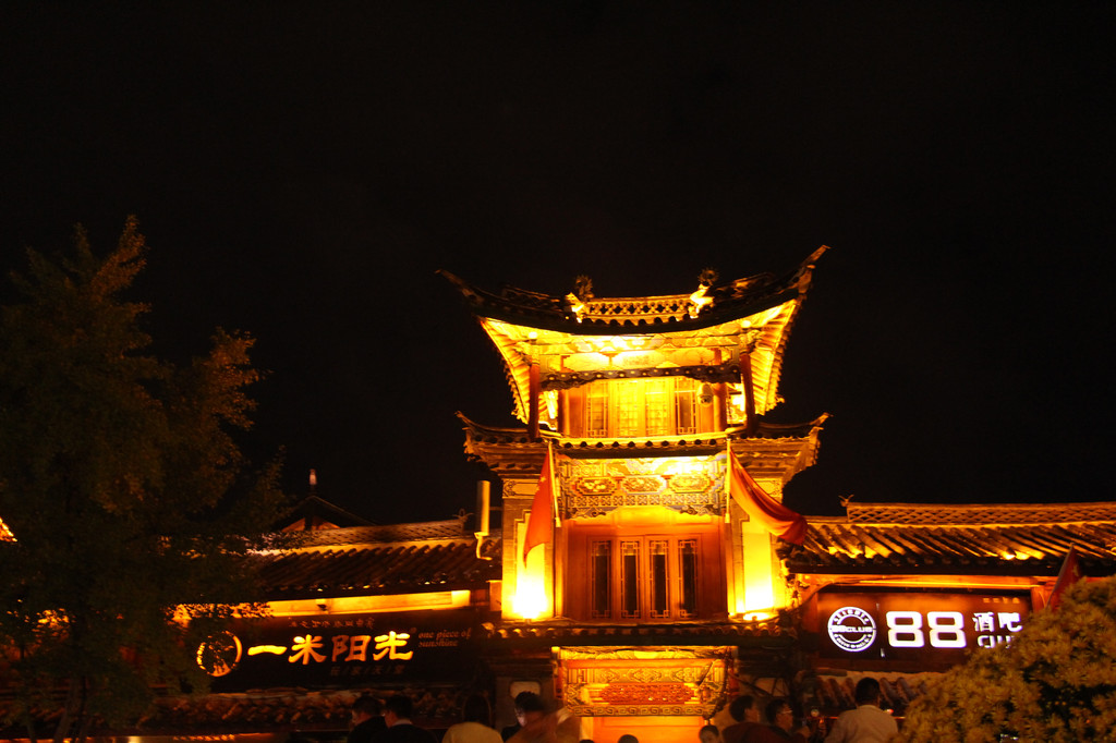 香格里拉的昼夜温差还是非常大的,晚上的已经是非常冷的了,但是还是没有挡住想去看一看古城的夜景的欲望。