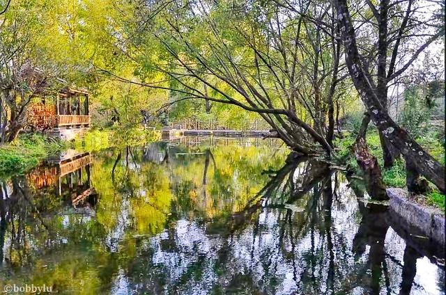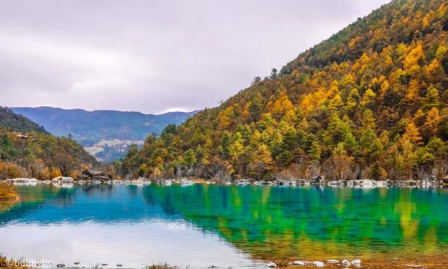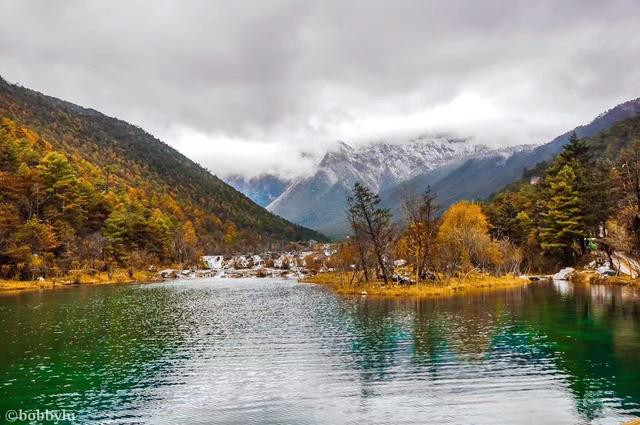 湖水的澄清碧澈让人不敢相信自己双眼看见的是水的色彩,而玉龙雪山冰雪融化成河水,从雪山东麓的一条山谷顺势而下,当所流经之处被山体阻挡时,便形成了面积不小的一汪的湖水。湖水平静清澈,几乎能倒映出你眼见的所有一切,当然也包括背景幕布一样的云天和远处的雪山。