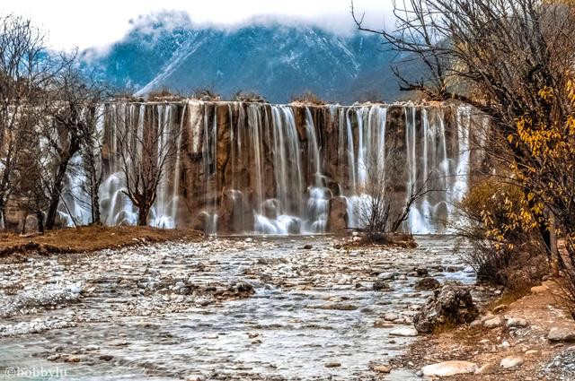 小瀑布,在一个叫蓝月谷的地方,在这里,你可以更加接近冰雪融化的溪水,甚至可以触摸到从高处流下而形成的小瀑布。瀑布落差不大,看似也就三四米的高度,但哗哗流淌的水声,甚至盖过了说话的声音,以至于不大声讲话都听不清楚。而蓝月谷这样美丽的名字,则来源于这里偶尔才能得见的真实景观。也因与《消失的地平线》一书中所描写的蓝月亮山谷极为相似而因此得名!