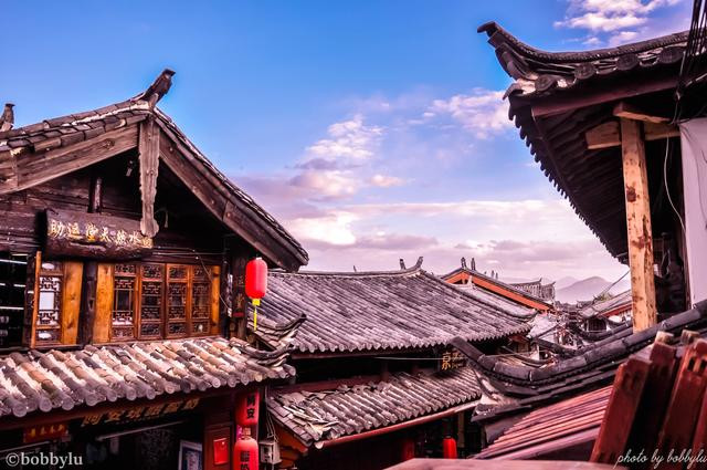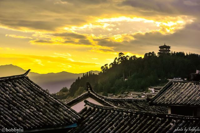 在大研古镇与束河古镇 ,我一共停留了三天。而住所,我却挑选了一家离四方街很近,但位置稍高的客栈。我住宿的要求不高,但一定要看得见风景,且价格合理就行。而在这家客栈,推开窗子就能看见大部分的街景,而且登上露台,甚至可以远观至狮子山的落日余晖......