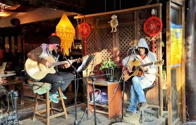 可玩笑归玩笑,在入住后的第一天傍晚,夜游大研古镇时,我却被动的“遭遇”了这样的一次尴尬。当时想走进一间酒吧喝一杯,顺便听听现场乐队的表演。但走到门口时被招揽生意的小哥(服务生)告知,啤酒论打卖(12瓶一打),我明确表示喝不了(老婆不喝酒),于是硬着头皮说半打可以么?但最终还是被拒绝。而小哥告诉我说,你进去之后自然就有人“帮”你喝了!我老婆还在边上,你说尴尬不......