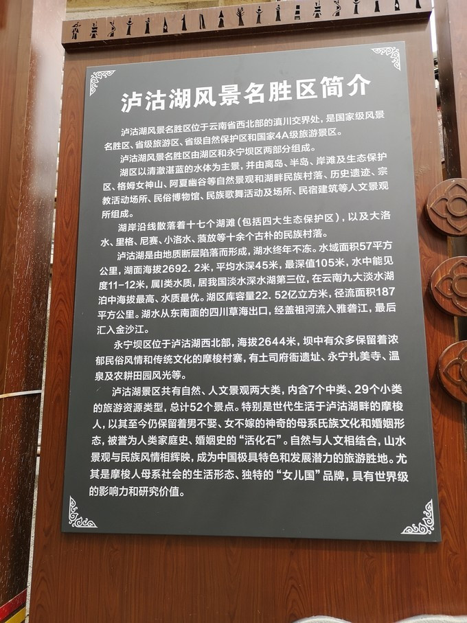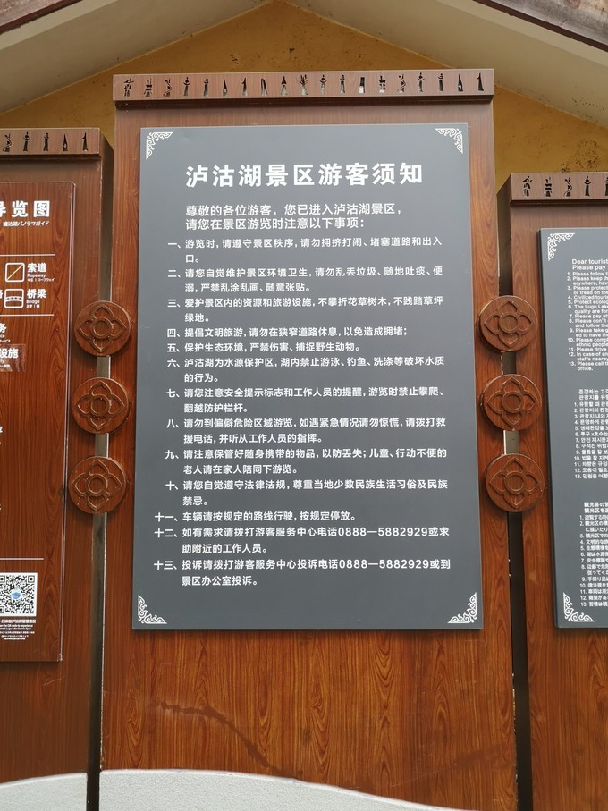 终于抵达我一直心心念念的 泸沽湖 风景名胜区 ,微信扫码可直接购买门票,成人70元一张票, 凭付款二维码,可直接从检票口扫码进入景区。这几张照片是进入景区以后我拍的景区导览图和景区简介