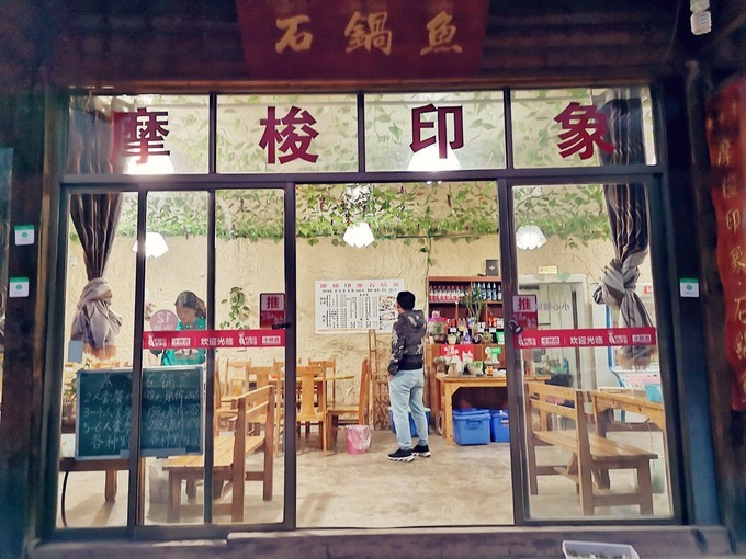 我们沿着湖边走到大洛水村口,沿着美食街逛了逛。石锅鱼是大 云南 的特色美食,我们选择了这家叫“摩梭印象”的石锅鱼餐馆。老板是个摩梭姑娘,非常热情的招待我们,带着我们去厨房选了一条当天从 泸沽湖 里打捞上船的活鱼,现称现杀现做。