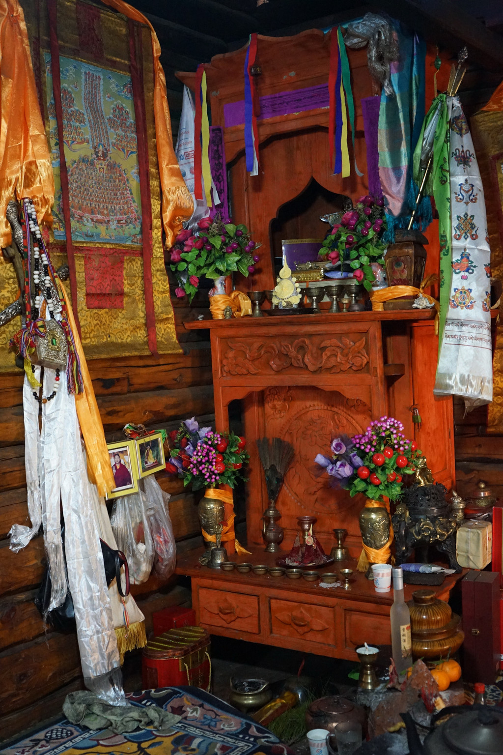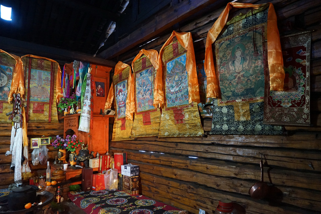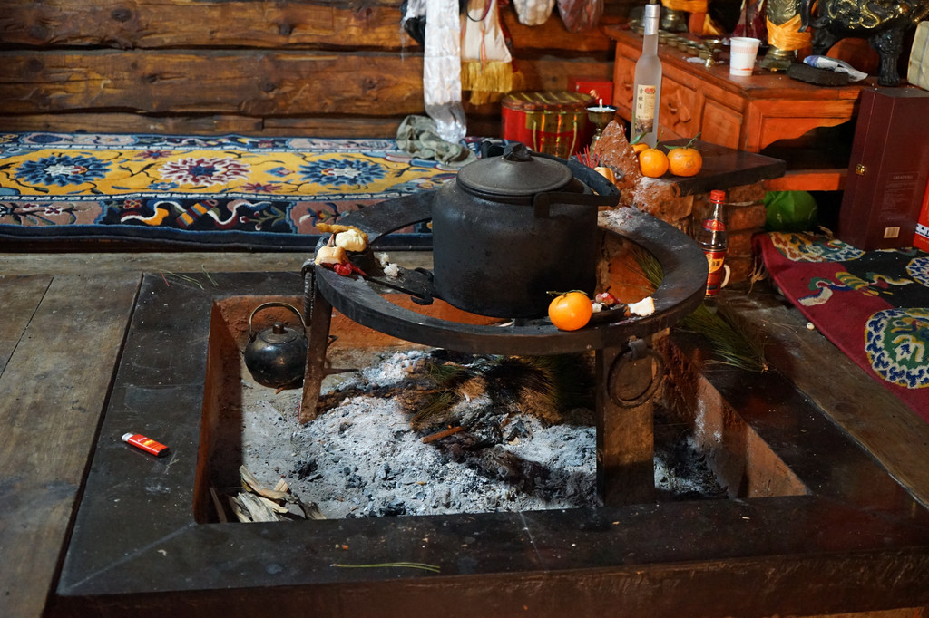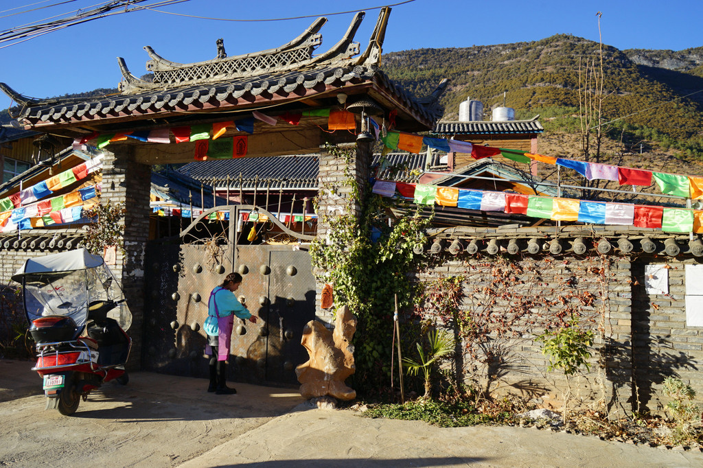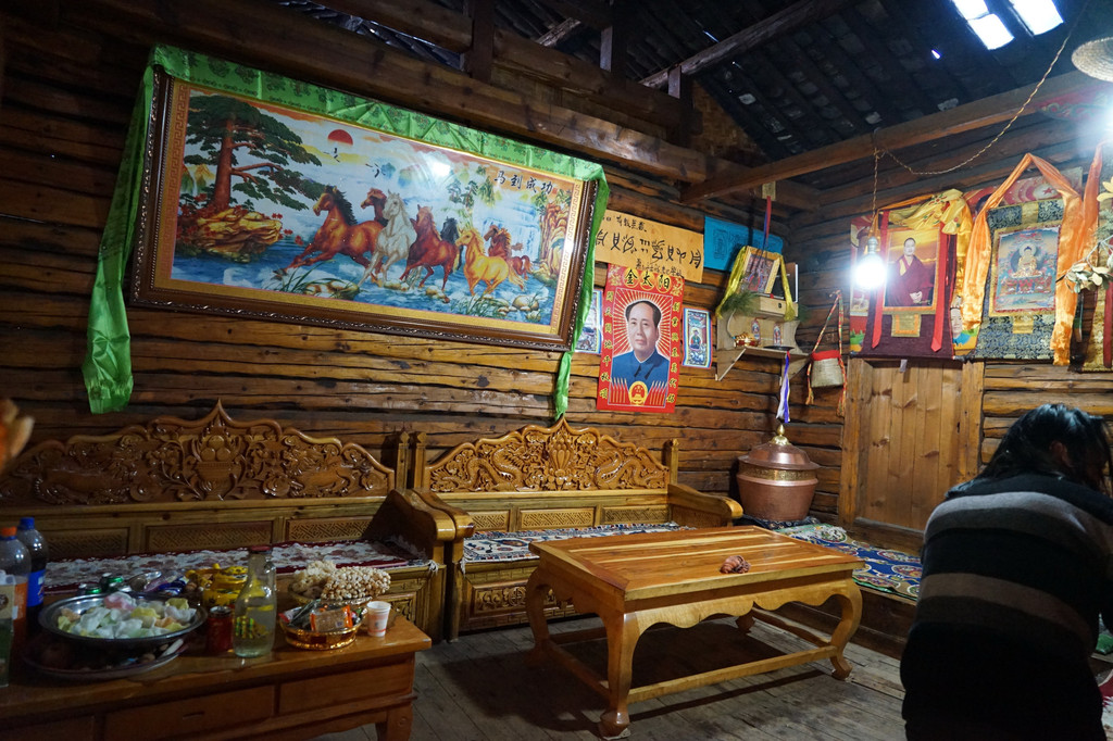 也算车上简单交淡过几句有点认识,汉子热情邀我进院坐坐,打开一间屋子让我进去,说是“祖母屋”(音似),进去后发现,原来同藏民一样,是间供佛祭神祭祖有火塘,接人待客的屋子。相聊之后才知,汉子好像是位“祭司”,前天刚在丽江城搞过元宵仪式,今天赶回四川凉山州盐源县的泸沽湖。