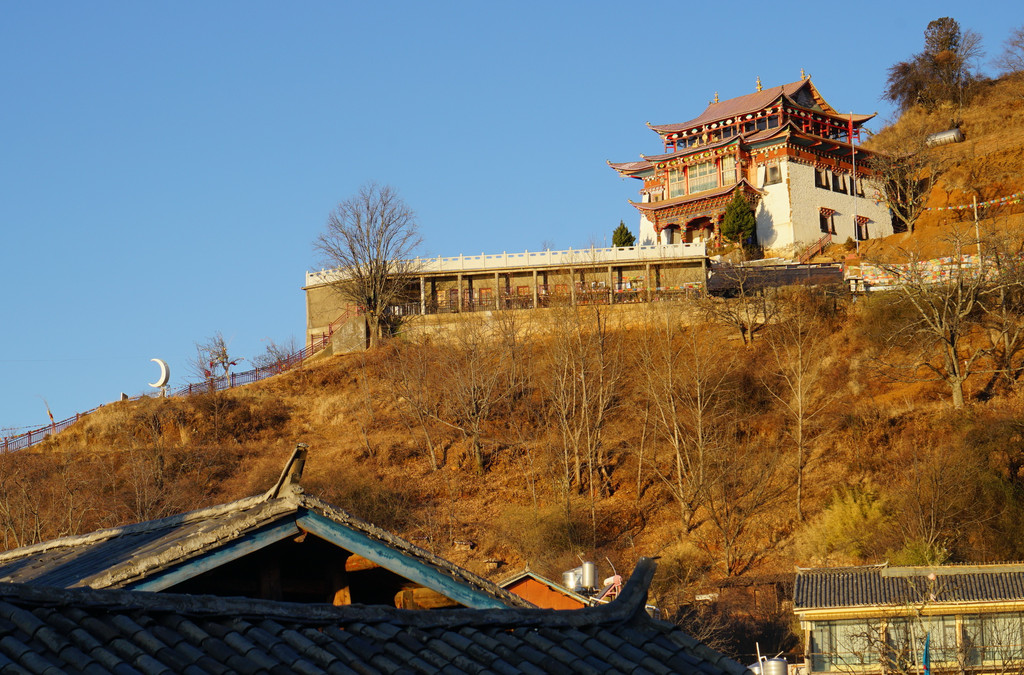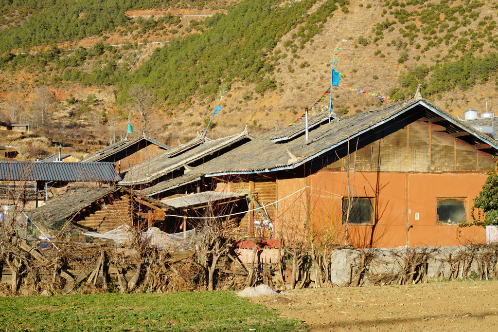 前天在丽江听介绍,纳西人信奉喇嘛教,是耗牛羌人一支的后裔。但湖边的村民,一会儿说是藏族,一会儿说是纳西族。但从村庄的建筑上看,似乎此地的村民更接近蔵族点。
